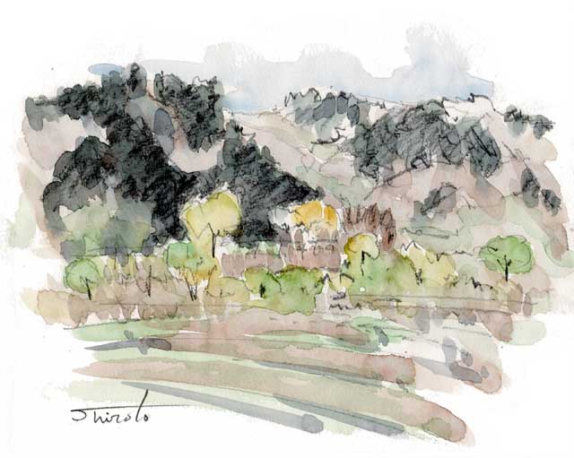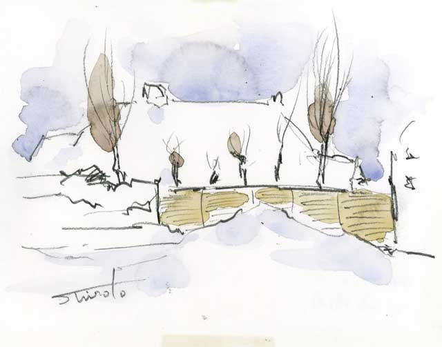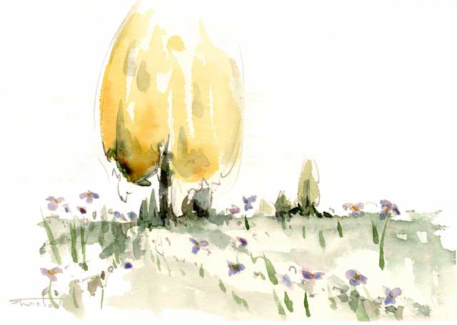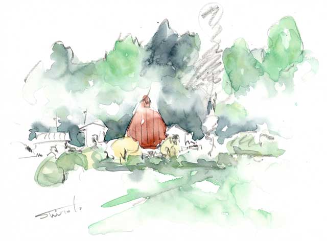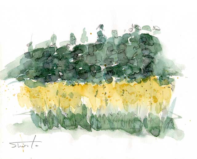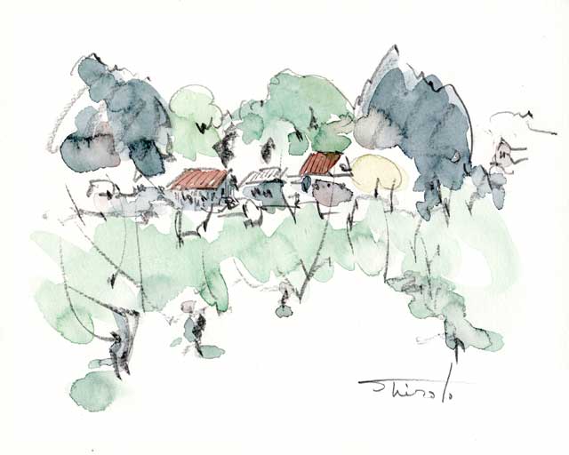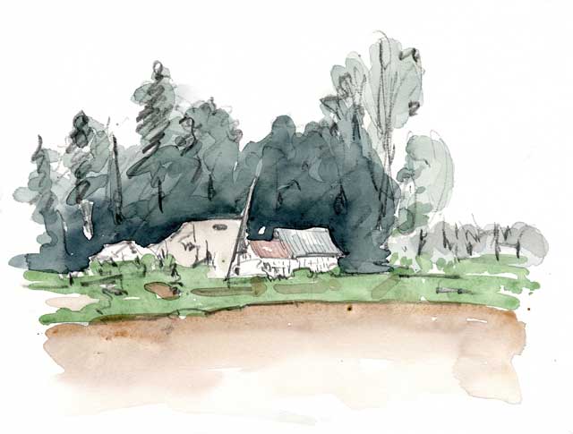 その後ろには、ドスーンと影を落とした樹木の前に、納屋がくっきりと浮かび出されていた。