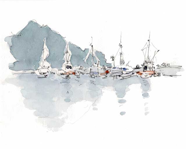 慌ただしい出漁時とは違い、漁の終えた昼下がりの港はのどかなものだ。